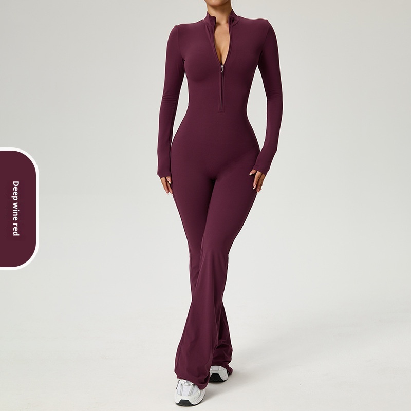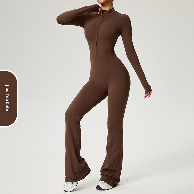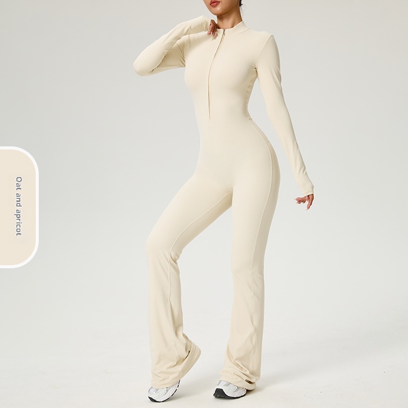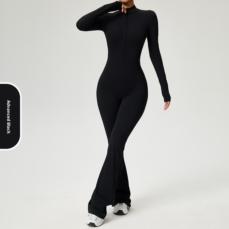 001 Cross-Border Zipper Cloud Feel Long Sleeve Yoga Jumpsuit High-Intensity Fitness Sports One-Piece Tight-Fitting