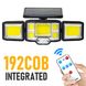 192 SMD COB LED utomhussolljus 3 huvuden vägglampa rörelsesensor 270 vidvinkelbelysning Vattentät med fjärrkontroll