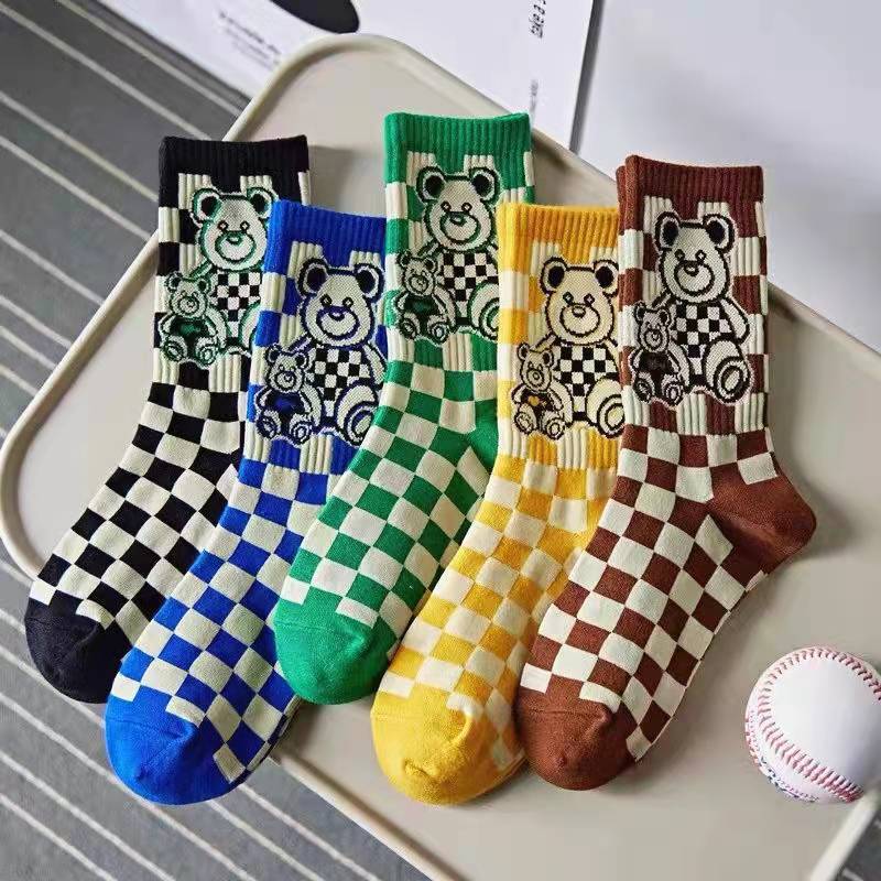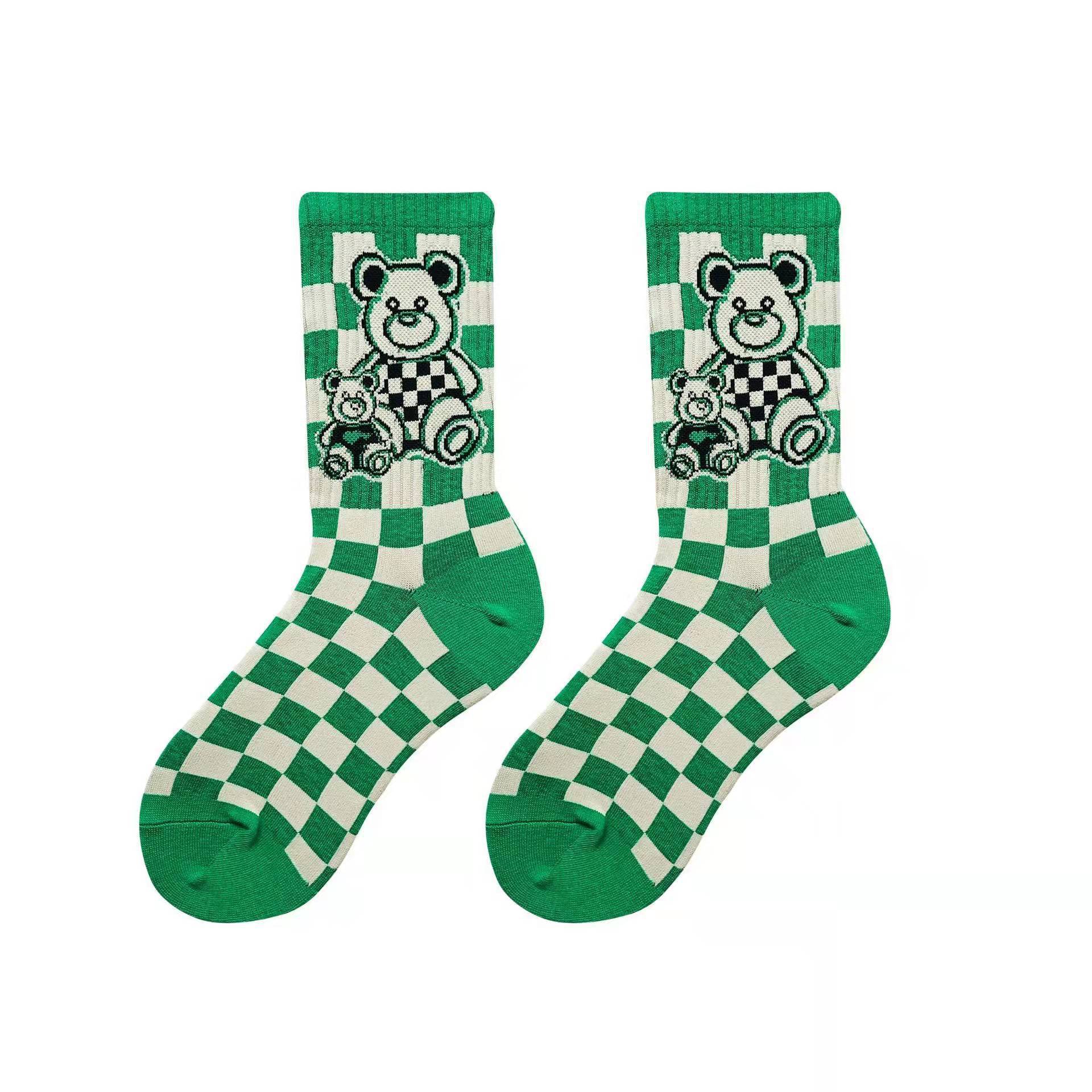 2 ST Checkerboard ins Trendiga gröna Medium Tube Little Bear Rutig sportstrumpa Herr och