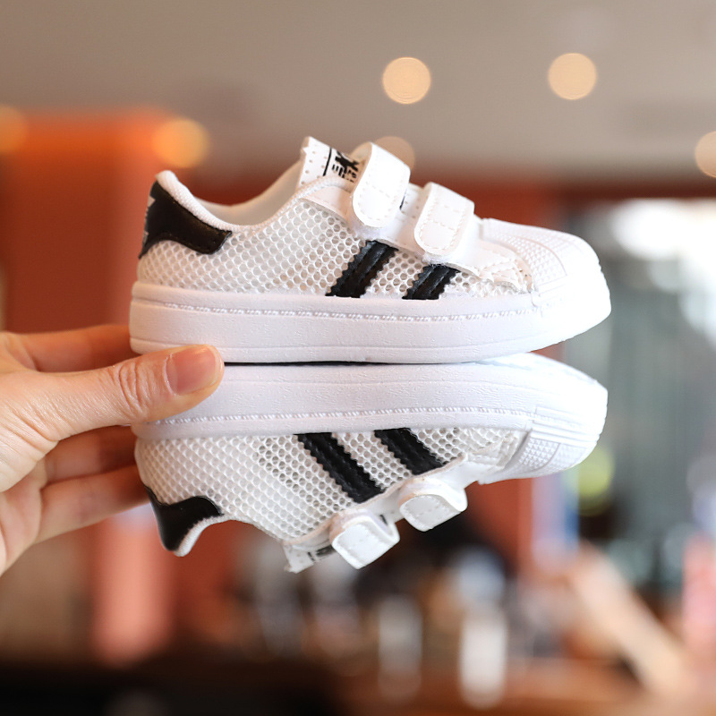 2021 nya barns lilla vita 1-6 år gamla skalbräda för män och kvinnor ihåliga meshskor Mjuk sula Babysport