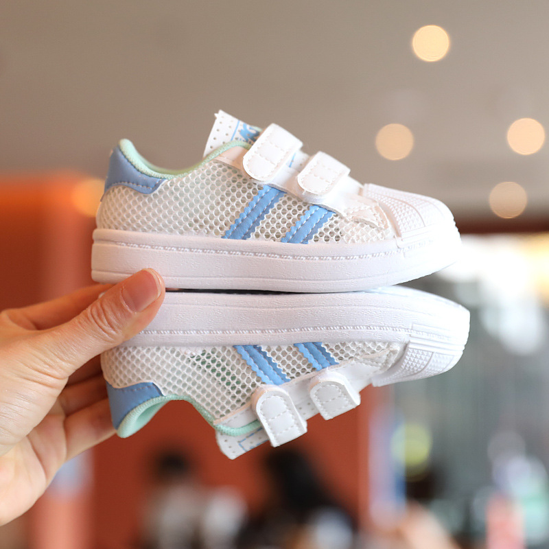2021 New Children's Little White Shoes 1-6 Year Old Men's and Women's Shell Board Shoes Hollow Mesh Shoes Soft Sole Baby Sports Sandals
