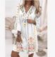 2022 Spring V-neck printed lace patchwork bohemian style casual vacation dress
