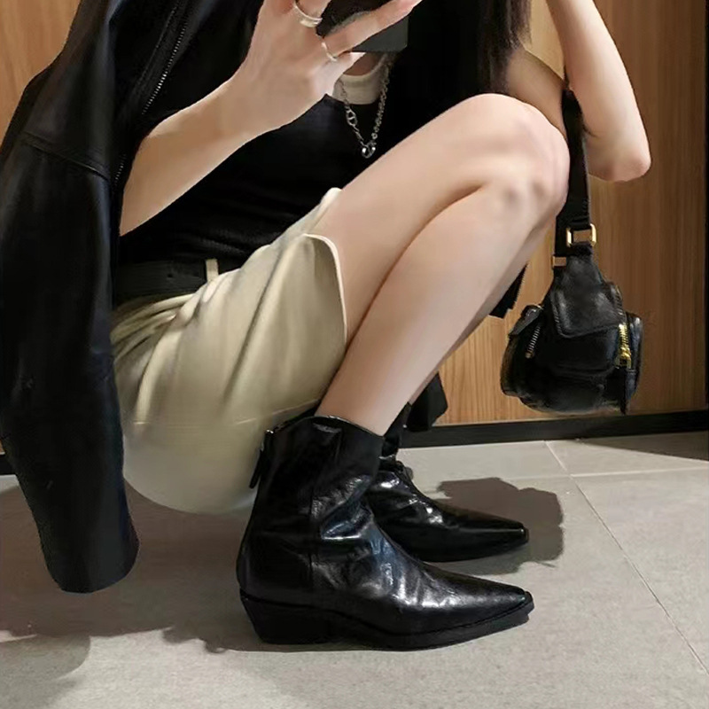 2024 Höst/vinter Ny Casual, spetsig V-ringad Cowboy Tjockklack Martin Kvinnors Korta Ben Långa Tunna Stövlar