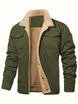 2024 Autumn Winter New Oversized Men's Polyester Fleece-Lined Workwear Short Sleeve Jacket Youth British Style Turn-Down Collar