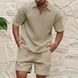 2024 Summer New Men's Casual Trendy Fashion Comfortable Waffle Solid Color Turn-down Collar Shirt Sports Set