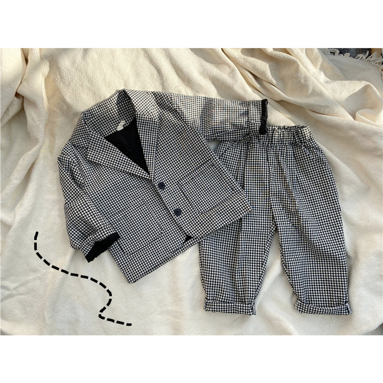 2024 tidig vår Koreansk klädsel Nya barnkläder för pojkar höstrutig kostym, byxor, kostym tvådelat set trendigt