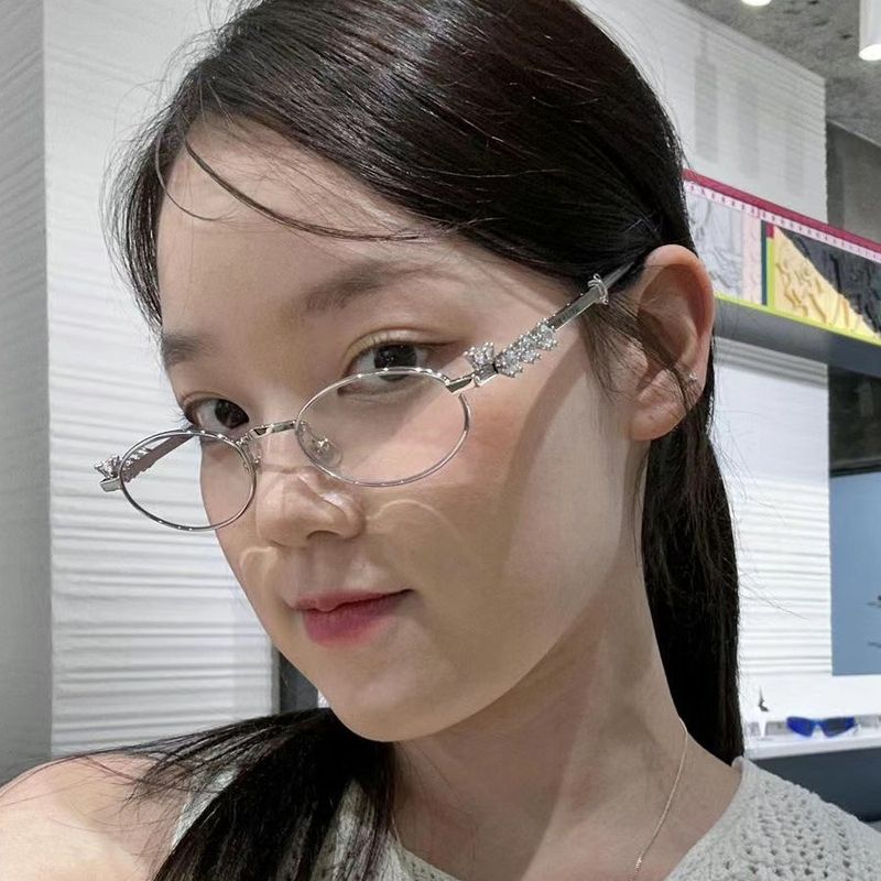 2024 New Women's Diamond-Encrusted Silver Small Frame Glasses for Small Faces High-End Y2K Style Personality Street Fashion Influencer Non-Prescription Glasses