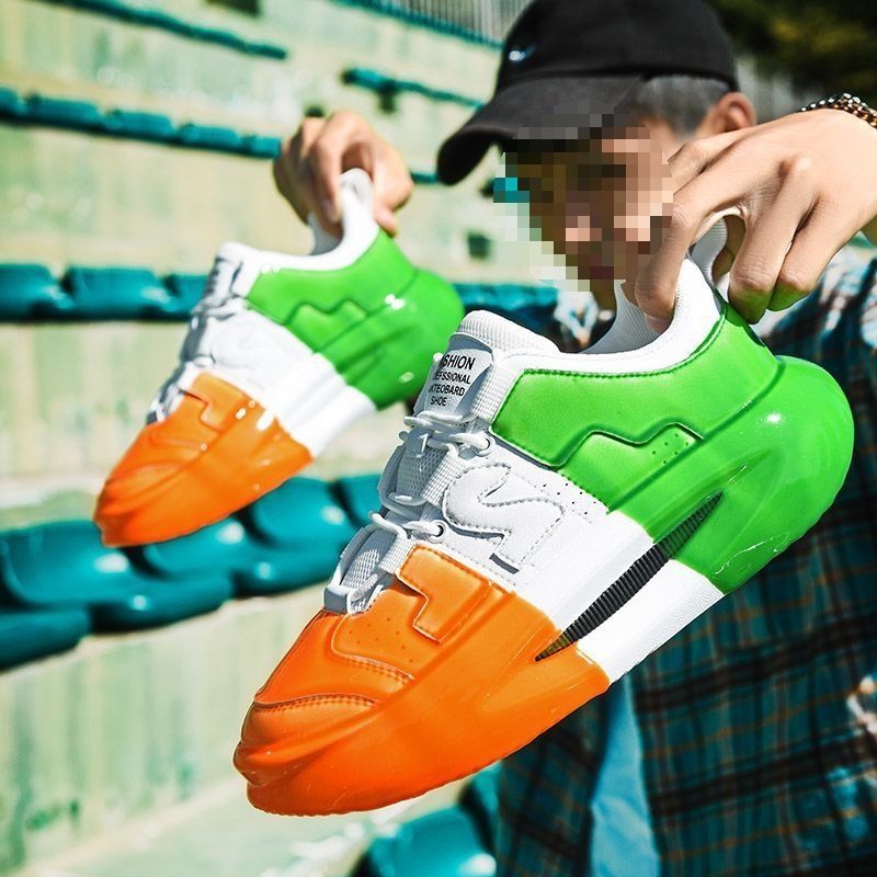 2025 Spring Summer New European Dopamine Spray Paint Color Block Trendy Men's Thick Sole Height Increasing Stylish Dad