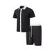 2025 Summer Men's Casual Turn-down Collar Button Color Block Shirt Short Sleeve Shorts Set For Men
