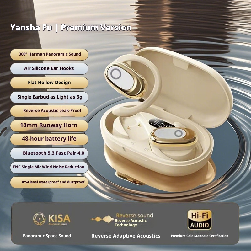 Brand:other,Transmission Range:15m,Functionality:Ultra-long battery life, call function, voice control, supports music, digital display screen,Bluetooth Protocol:5.4,How to use:Clip-on Earrings,Is it single or double ear?:Bilateral Stereo Sound,Color:Black HiFi panoramic surround sound + ultra-long battery life + HD calls, white HiFi panoramic surround sound + ultra-long battery life + HD calls, skin color HiFi panoramic surround sound + ultra-long battery life + HD calls,Customizable:Support,Is it a patented source product?:No,Mold Type:Official Model,What type of chip is it?:Zhongke Lanxun,Battery life:More than 8 hours,Year/Season of Release:2024,Style:Sporty style,Waterproof performance:Waterproof for Daily Use,Material:ABS