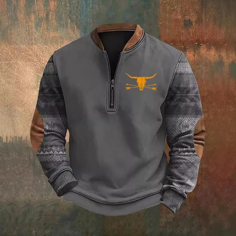 Zipper Sweatshirt Men's 3D Print Men's Half Zipper Sweatshirt Autumn Winter Print Sweatshirt