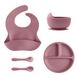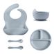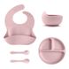 5Pcs Baby Silicone Feeding Set Round Dining Plate Sucker Bowl Dishes For Kids Waterproof Bib Children's Tableware Straw Cup