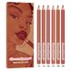6-pack nude läppenna i trä med vattenfast naturlig matt linje som inte bleknar, set med läppstift för kvinnor