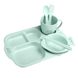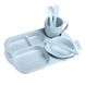 The 6-piece set includes 1*dining plate, 1*spoon, 1*fork, 1*chopsticks, 1*bowl, 1*cup