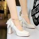9982-H78TP Franska små, väldoftande högklackade platåskor med fyrkantig tå, fjärilsrosett och pärlkedja._voghion.com