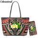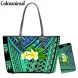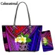 Evening Bags Coloranimal 2Pcs/Set PU Leather Women Shoulder Bag&Purse Gradient Polynesian Plumeria Print Handbag For