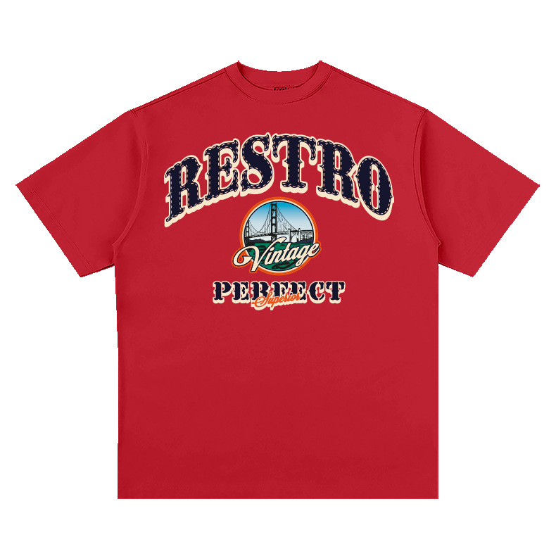 American minimalist City boy style printed hip-hop big red loose shoulder short sleeved T-shirt trend