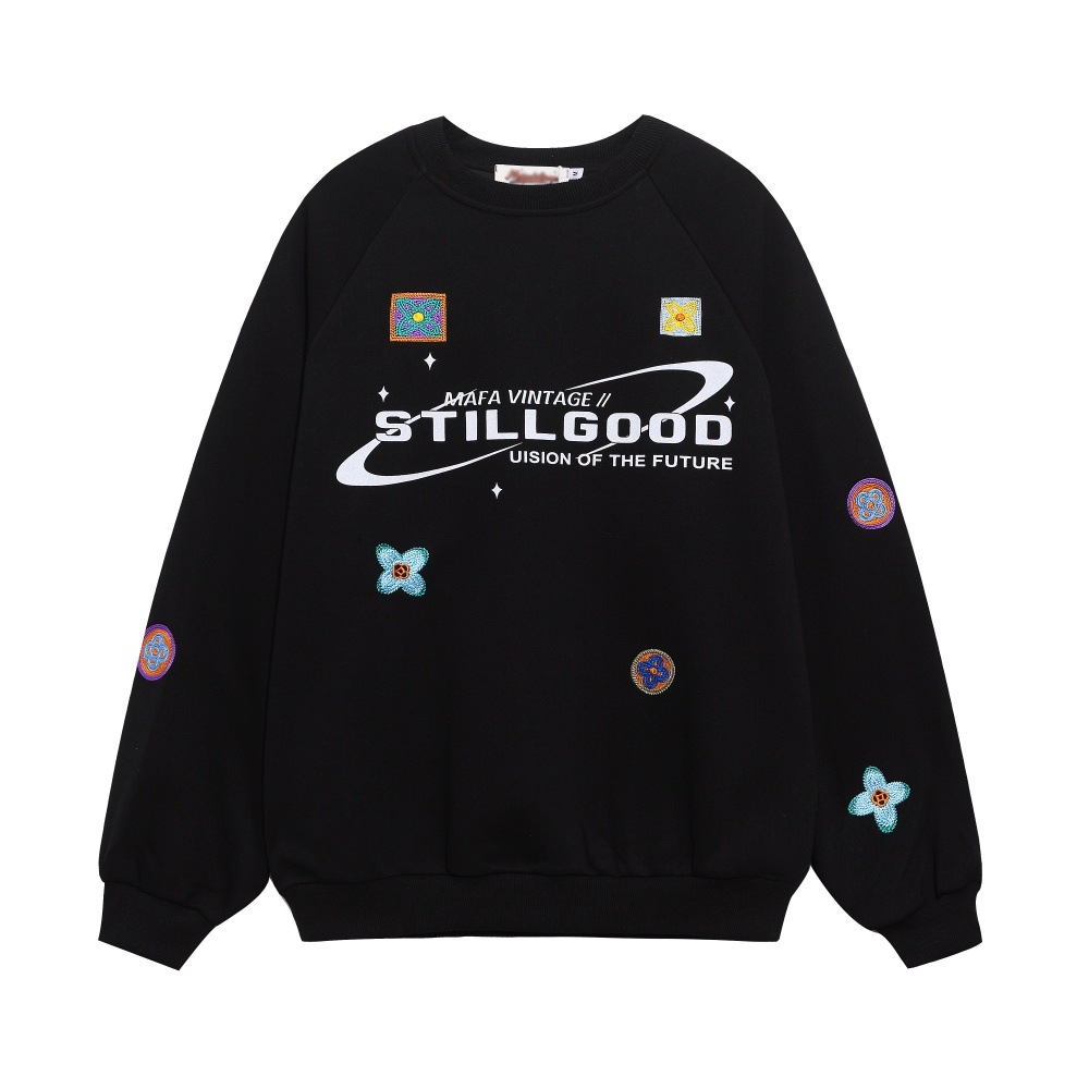 American Street Style Embroidered Letter Crew Neck Sweatshirt Loose Casual Long Sleeve Pullover Vibe Spring Autumn Men's