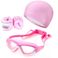 Barnens simglasögon, imfria simglasögon för pojkar och flickor, stora bågar med öronproppar i ett stycke + badhylsor + PU-badmössa