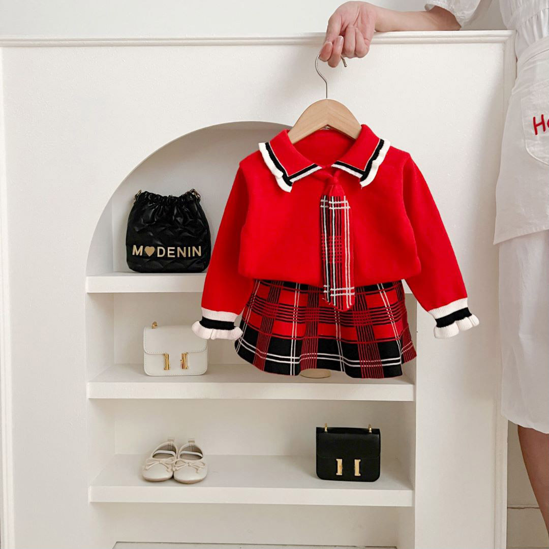 Children's Sweater Set 2024 Autumn/Winter New Western Style Knitwear Academy Style Sweater Two Piece Skirt