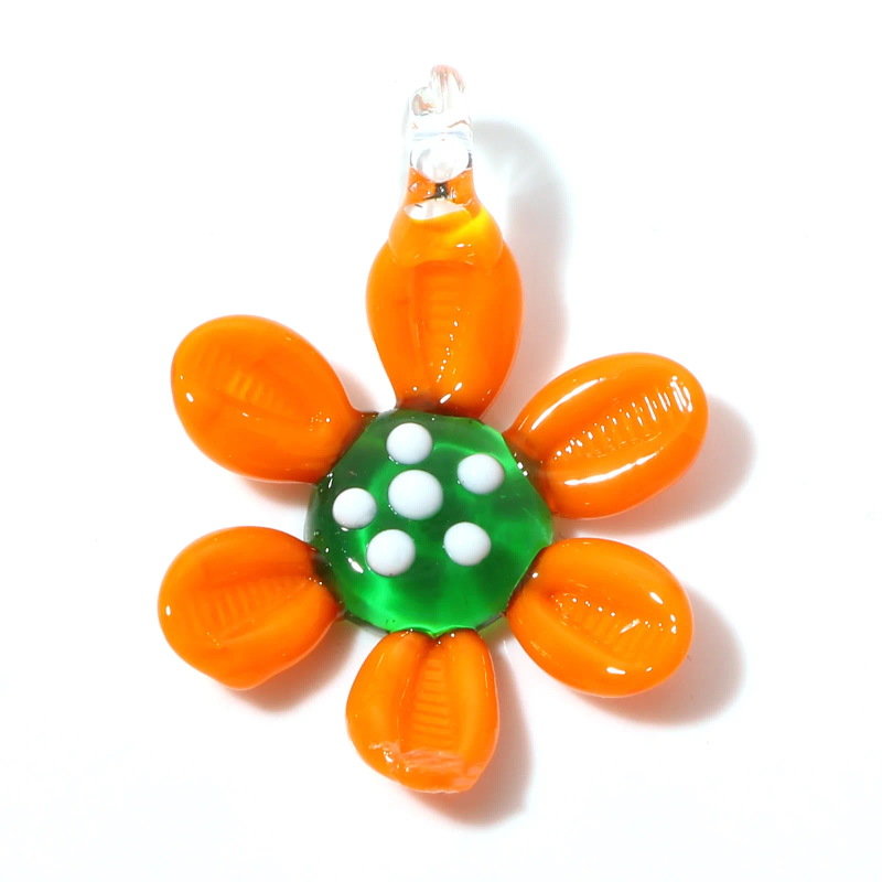 Pendant Necklaces 2PCs Floral Lampwork Glass Pendants Multicolor Flower Charms DIY Making Necklace Earrings Bracelet
