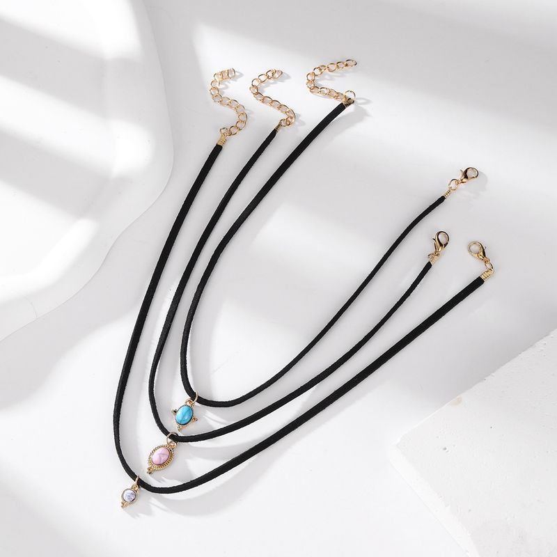 Bohemian Colored Turquoise Pendant with Velvet Rope Layered 3 Piece Set Necklace Accessories