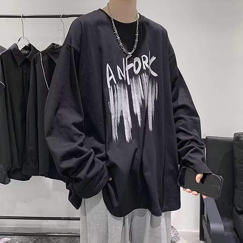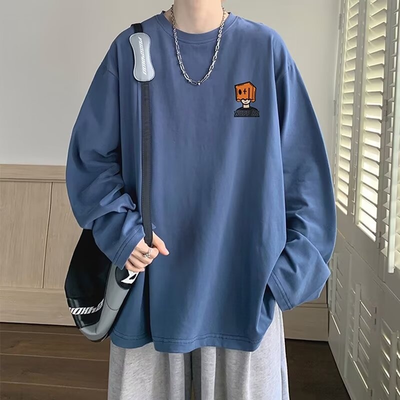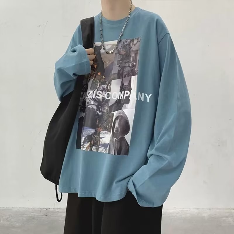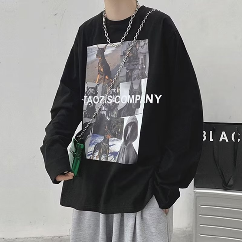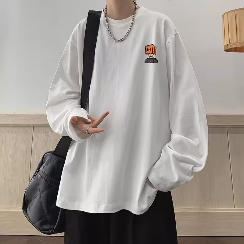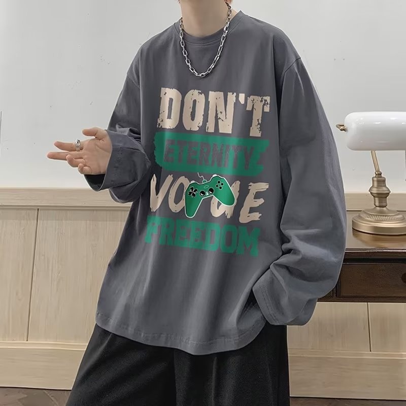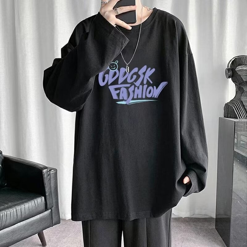 boy Boy Printed Versatile Long Sleeve T-Shirt For Men 2024 Spring And Autumn Trendy Brand Loose Fit Youth Casual Base Shirt Tee
