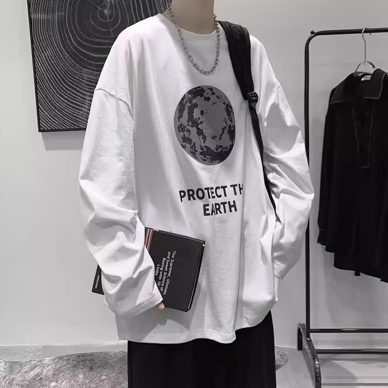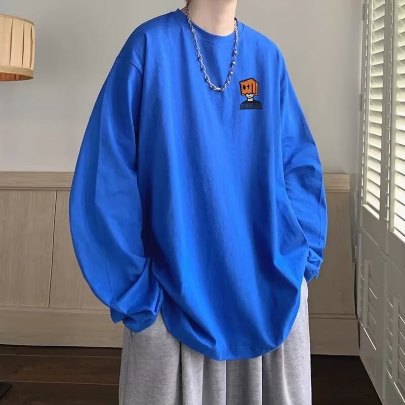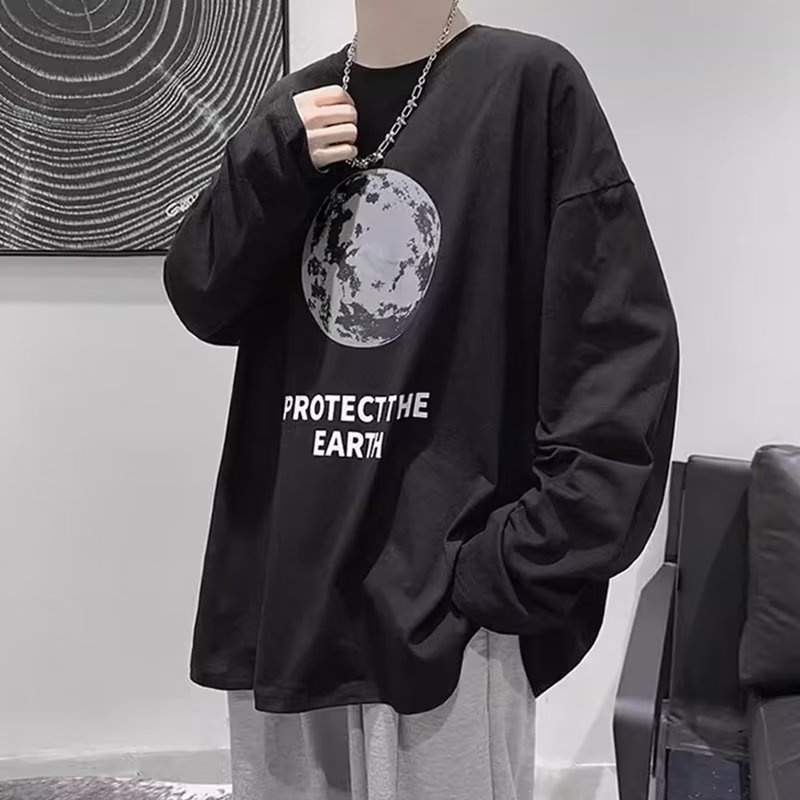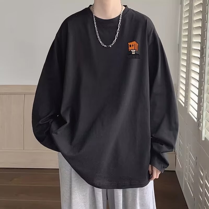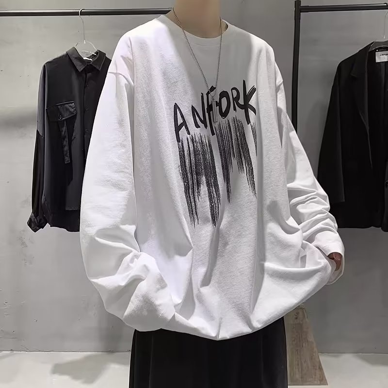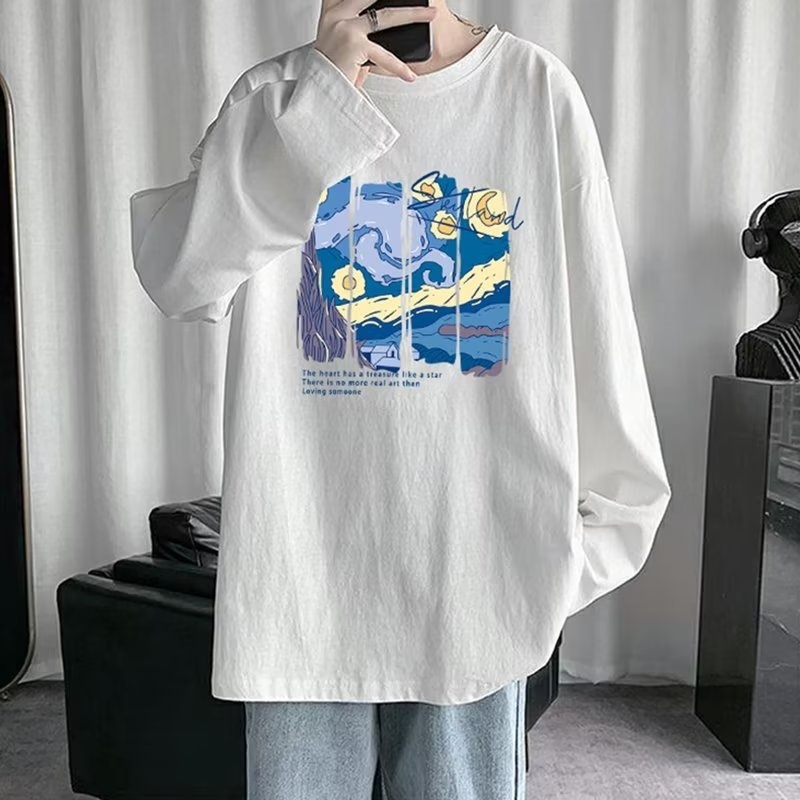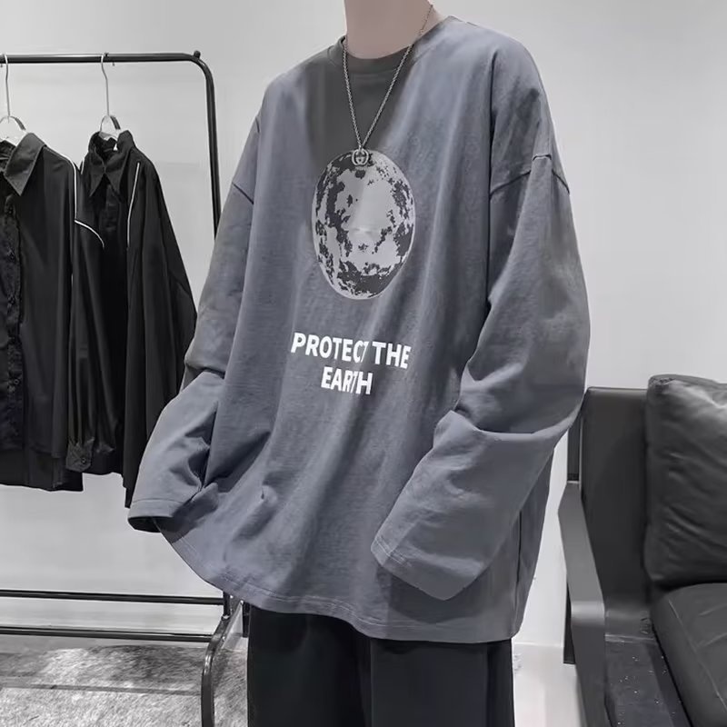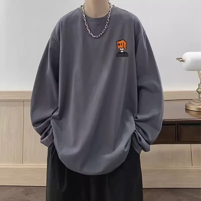 boy Boy Printed Versatile Long Sleeve T-Shirt For Men 2024 Spring And Autumn Trendy Brand Loose Fit Youth Casual Base Shirt Tee
