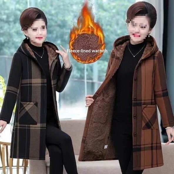 Calm Calm Fleece-Lined Thickened New Style Mom's Autumn Winter Mid-Length Plus Size Versatile Loose Slimming Hooded Trench Coat