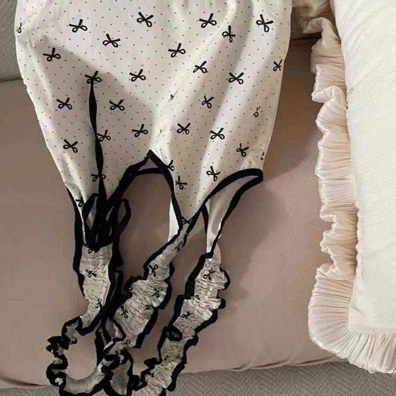 Bow Polka Dot Canvas 2025 Fall/Winter New Women's Drawstring Pleated Tote Bag Shoulder Bag