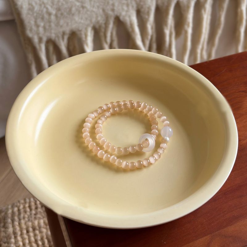 Cat's Eye Stone Double Circle Beaded Bracelet Niche Design Cool and Elegant Bracelet Light High-end Layered Jewelry
