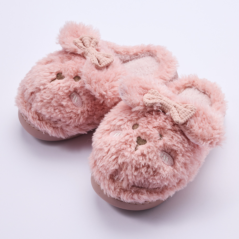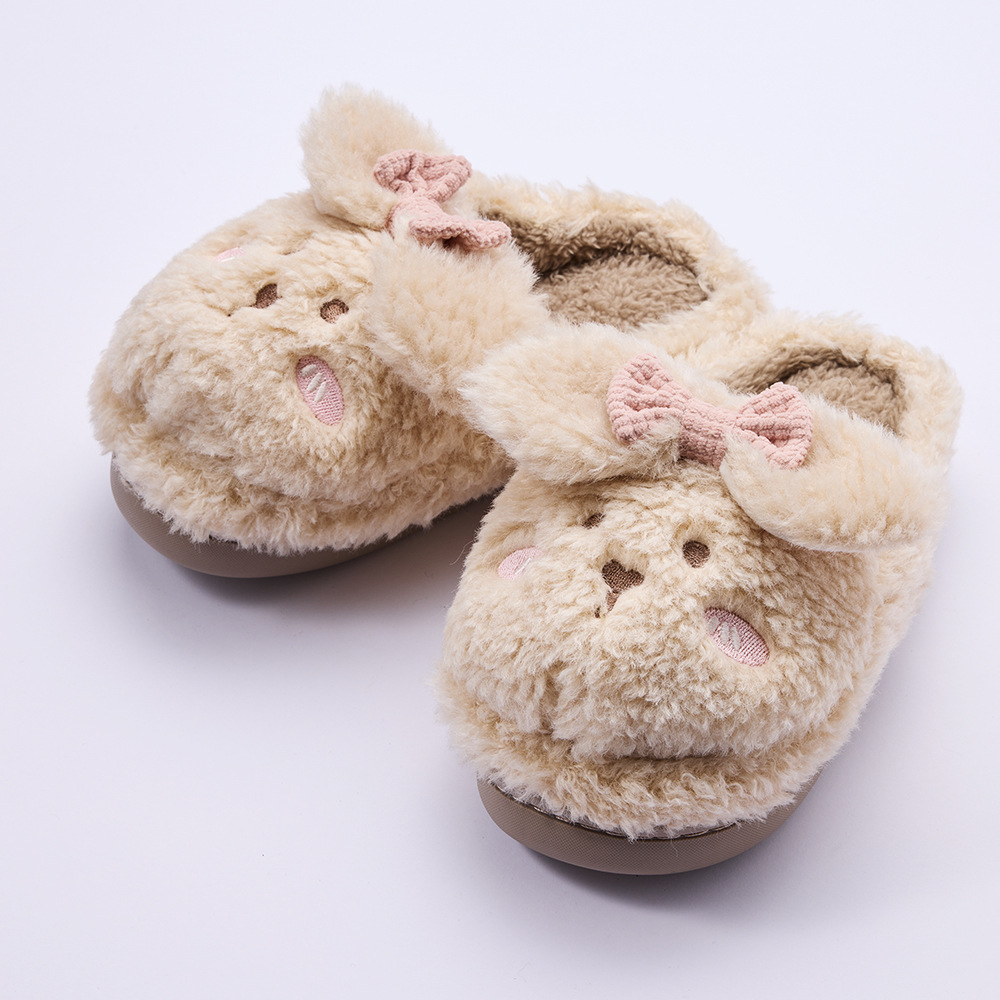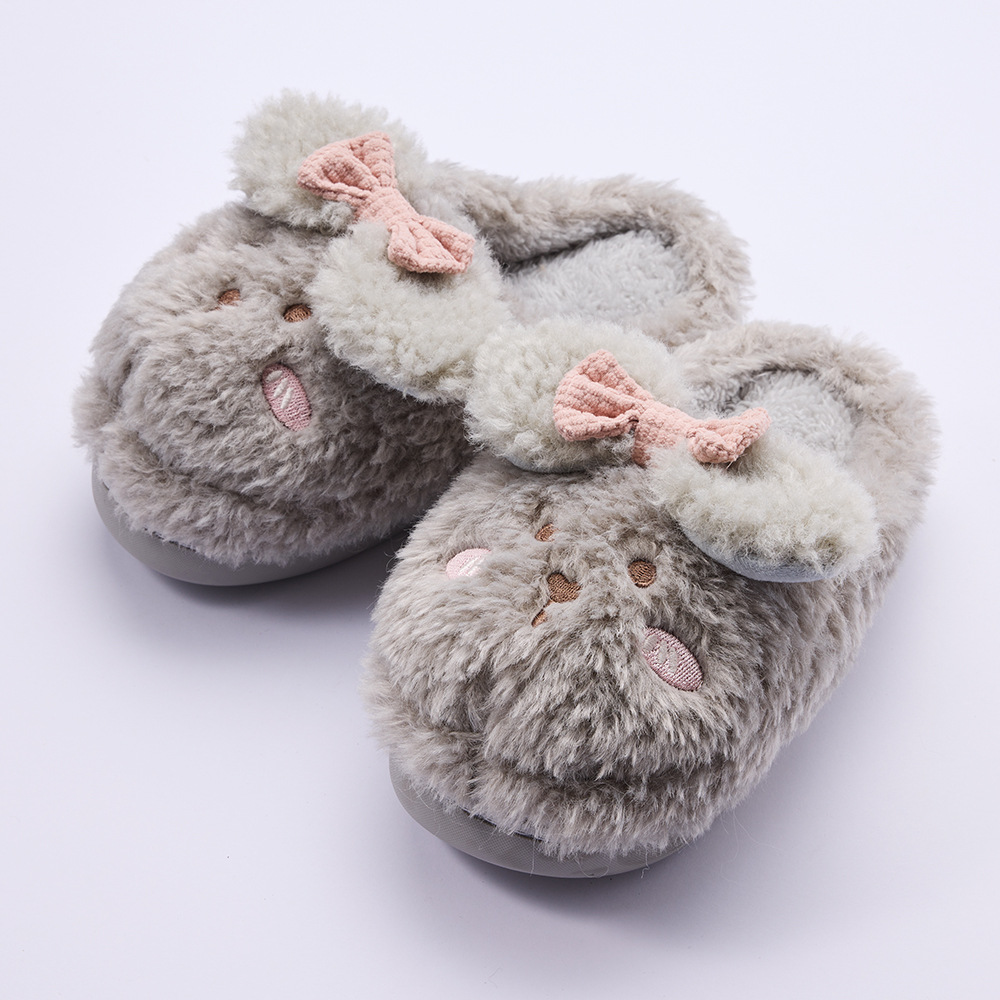 Children's cotton slippers for women to stay indoors with anti slip and warmth, cartoon rabbits for autumn and winter, thickened plush large children's cotton slippers for men