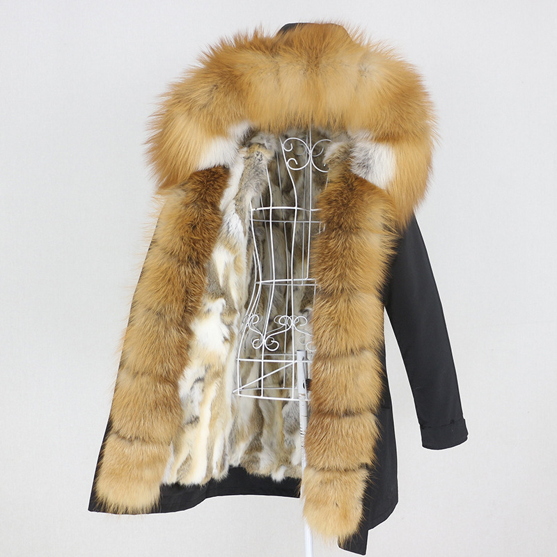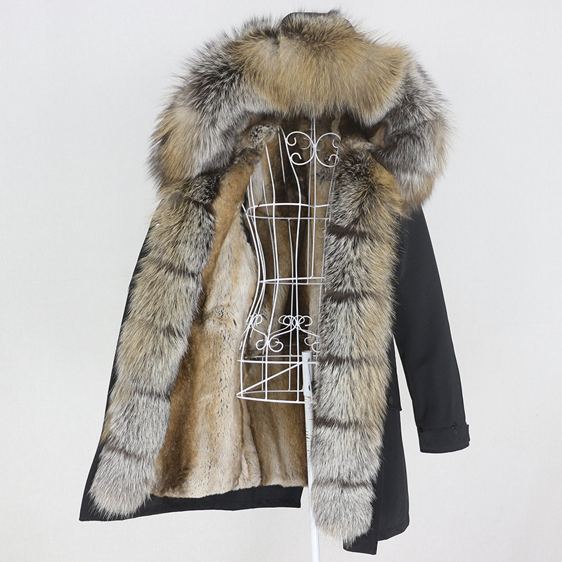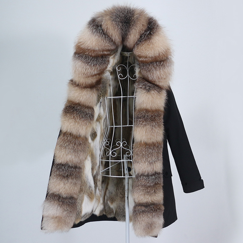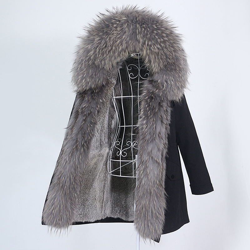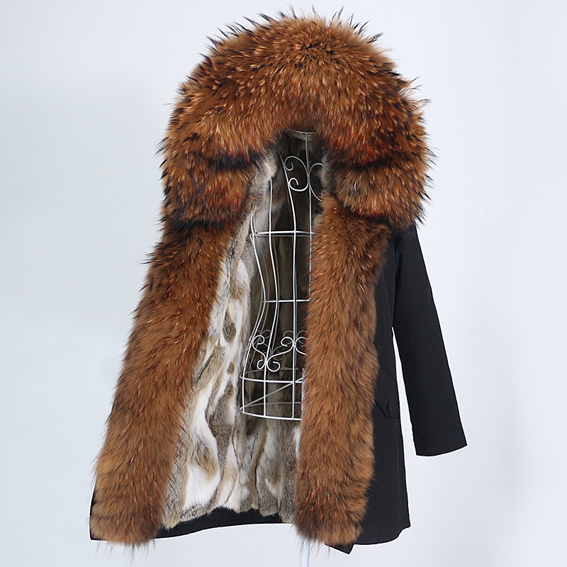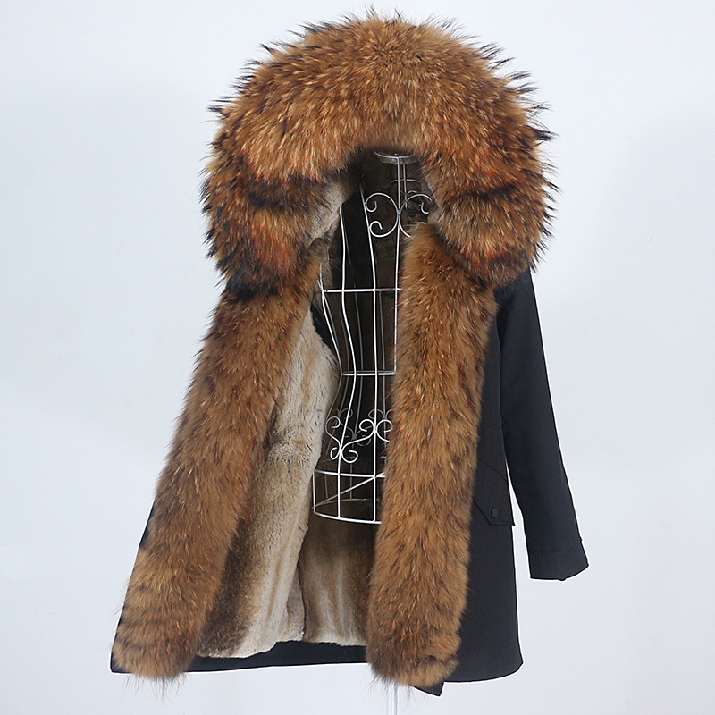 färger : Black + original color raccoon fur spray tip + grass yellow whole leather rabbit fur liner