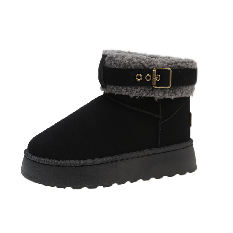 Damsnökängor med fleece, förtjockade vintermuffins, tjocka sulor, varma korta stövlar i bomull