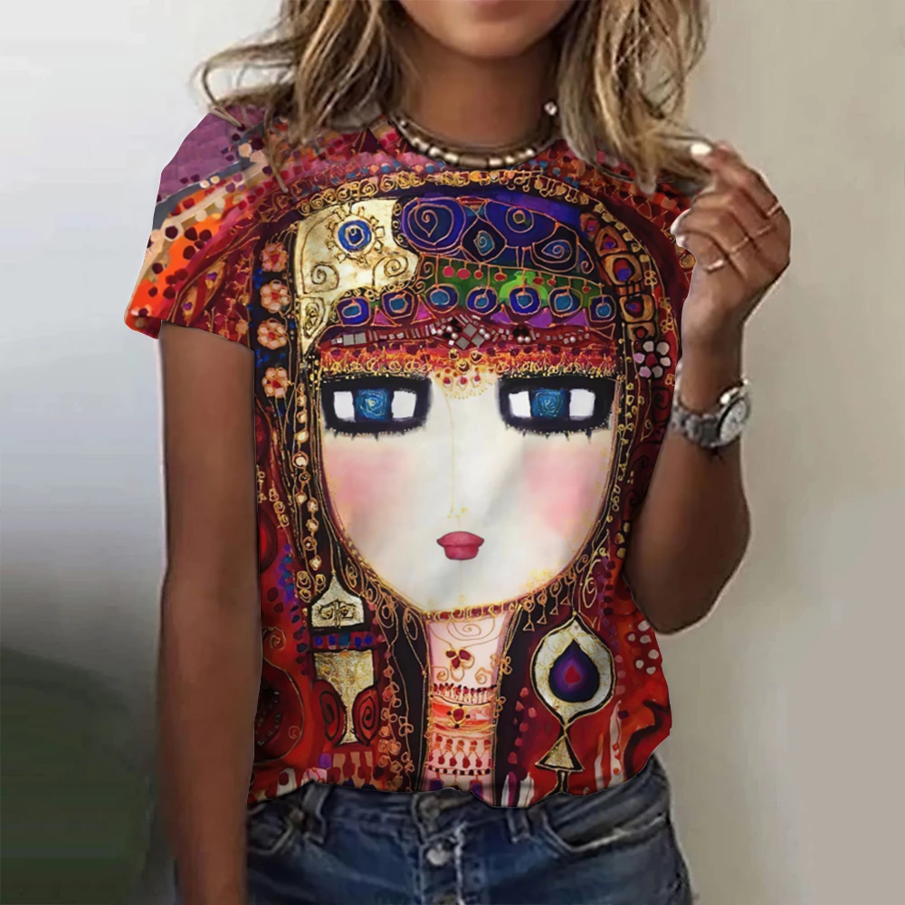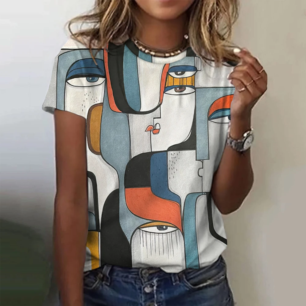 Sommarmodetopp för kvinnor 3D-blommiga t-shirts för flickor ansiktsmålning Haruku färgglada vackra kortärmade t-shirts överdimensionerade418