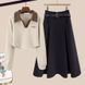 Damkläder höst och vinter ny fet mm-version av åldersreducerande polotröja med krage och kjol som täcker kött, tvådelad kostym