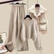 Damkläder ny förtjockad väst mångsidig stickad tröja byxor med vida ben tredelad kostym