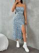Women's 2025 Spring/Summer Strap Wrapped Chest High slit Daisy Printed Dress