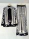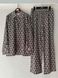 Damkostym med retro, geometriskt tryck och lös skjorta + hög midja och vida byxor, moderiktig kostym