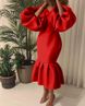 Dammode Enfärgad V-ringad Bubble Långärmad sjöjungfrukjol