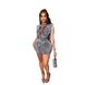 Dammode kvinnors enfärgade mesh heta diamant ärmlös kort kjolklänning