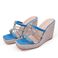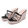 Damskor Fyrkantig tå Kilklack Tofflor Dam Sommar Strass Sandaler Höga Klackar Tjock Botten Strå Flätad Rep Botten