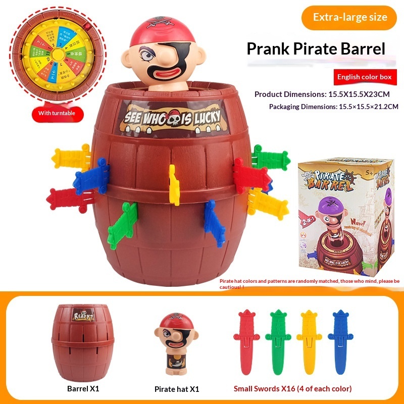 Depending on the production batch, the color of the pirate's head may be slightly darker or lighter.The color and pattern of the pirate hat are randomly matched, please be cautious if you mind!!