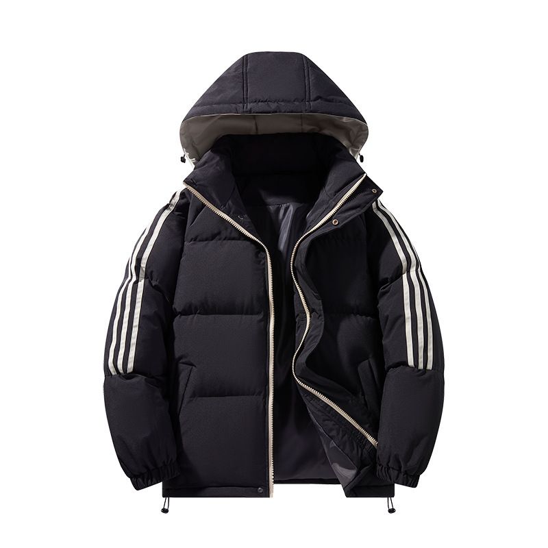 Down Cotton Jacket for Men Couples Hooded Three-Stripe Cotton Coat Outdoor Puffer Jacket Thickened Warm Plus Size Outerwear