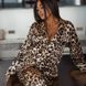 Elegant Russian-Inspired Leopard Print Viscose Kimono Set - Lightweight Long Sleeve Cardigan & Pants For Spring/Autumn