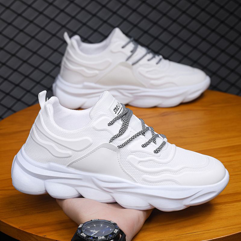 Enkla, andningsbara sportskor för män, moderiktiga och mångsidiga tonåringar, löpning i bekväma, trendiga koreanska kläder för män