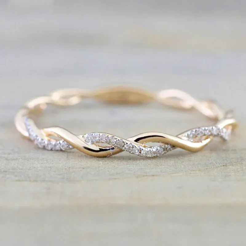 Simple Stylish Women Thin Rings Fancy Twist Band Shiny Crystal Cubic Zircon Rings Daily Wear Versatile Jewelry Minimalist Gift