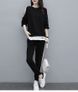 Women's Clothing Two-Piece Sweatshirt Set With Side Slit Pants - Korean Fashion Casual Outfit (Black, Pink, Blue) - Plus Size Available (M-4XL)