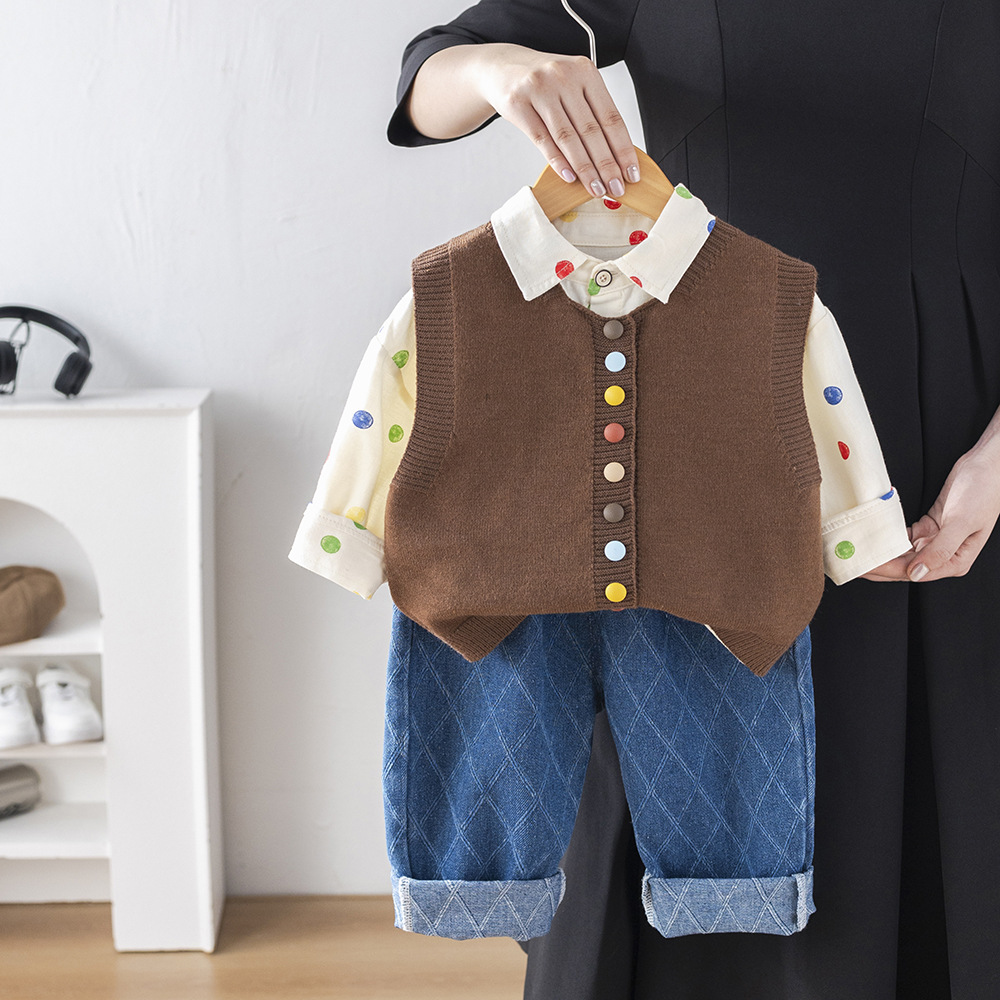 Boys' Spring And Autumn New Colorful Button Sweater Three-Piece Set 2025 Stylish Baby Long Sleeve Outfit Infant