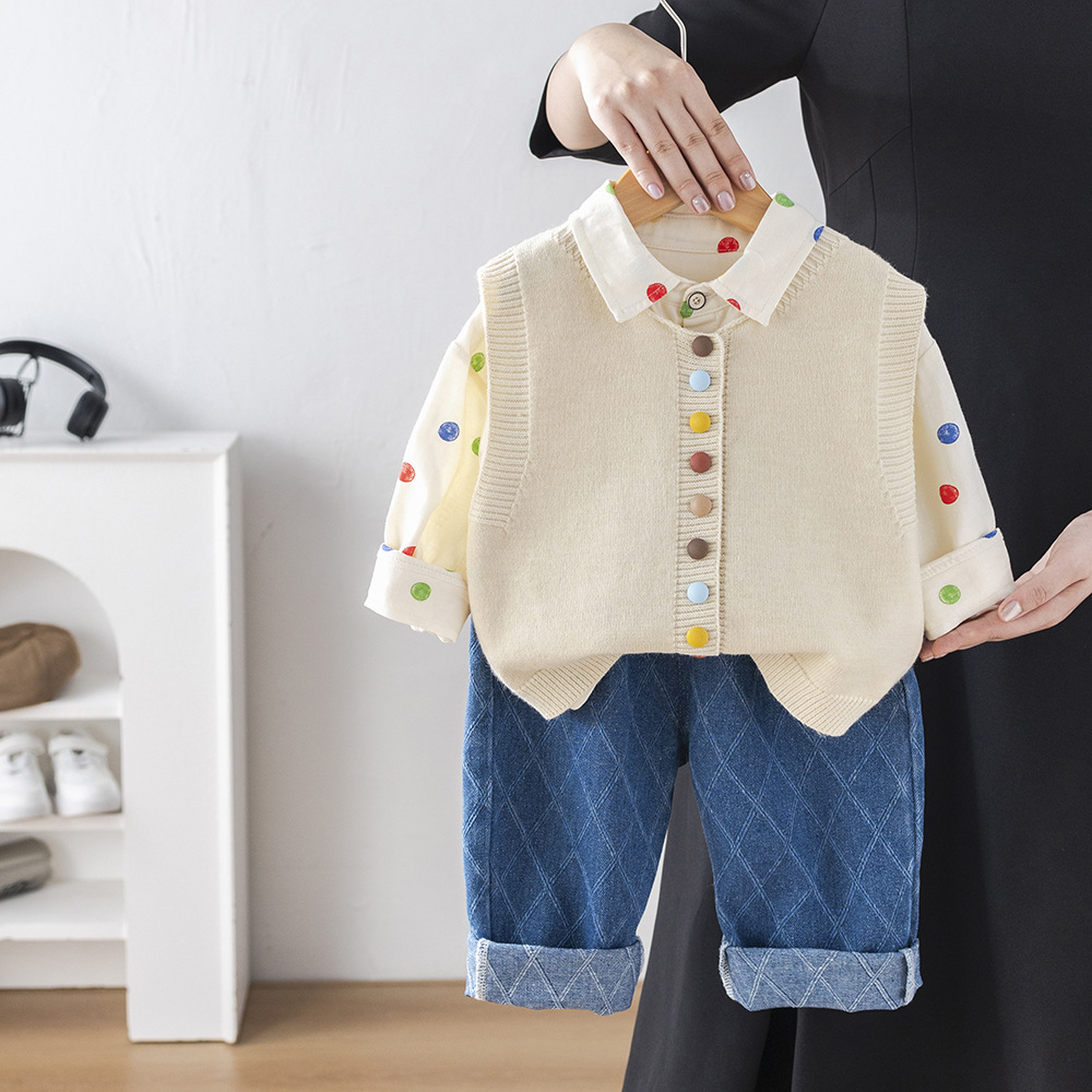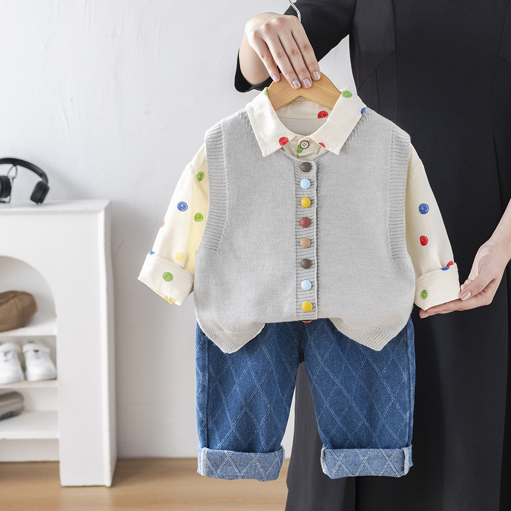 Boys' Spring and Autumn New Colorful Button Sweater Three-Piece Set 2025 Stylish Baby Long Sleeve Outfit Infant Children's Clothing